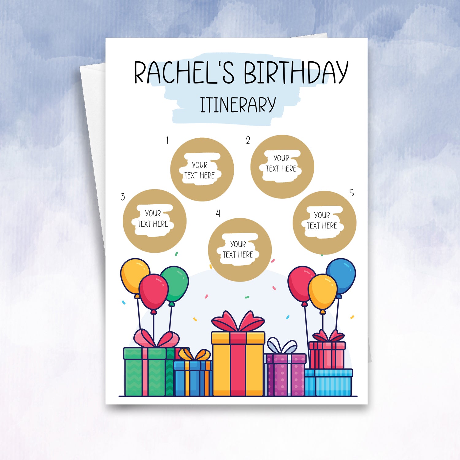 Birthday Itinerary personalised card