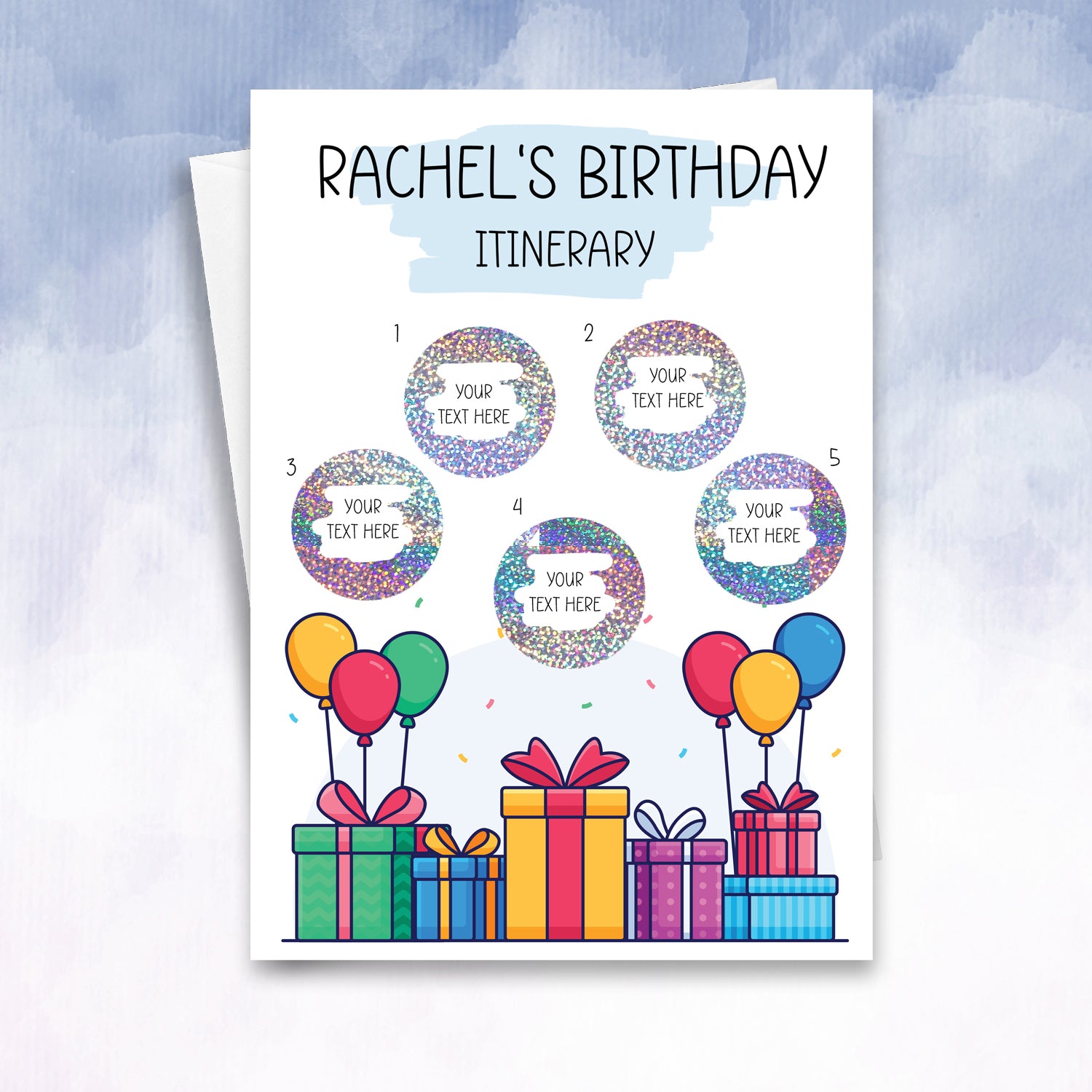 Turn a birthday into an unforgettable adventure with this interactive scratch card, designed to reveal a custom itinerary filled with joy, excitement, and surprises!