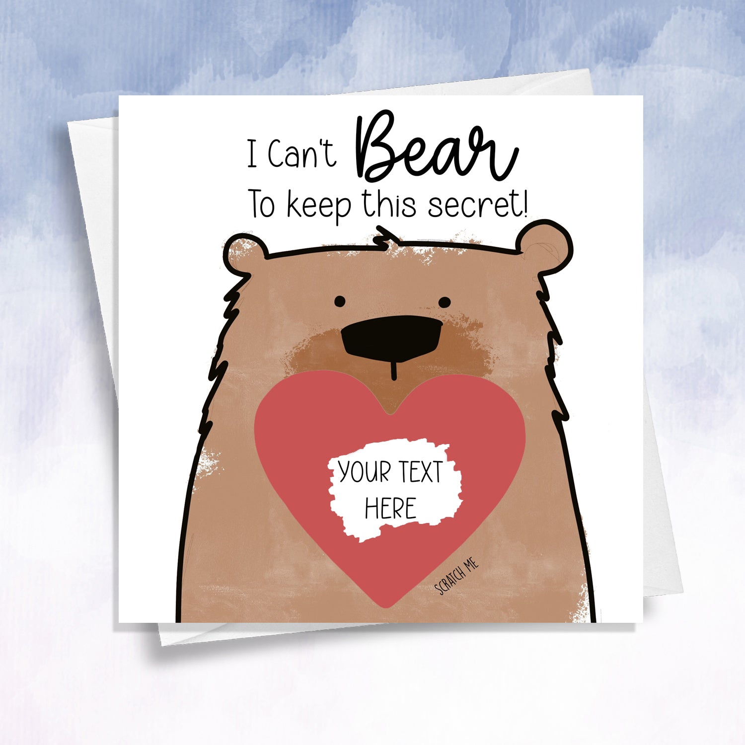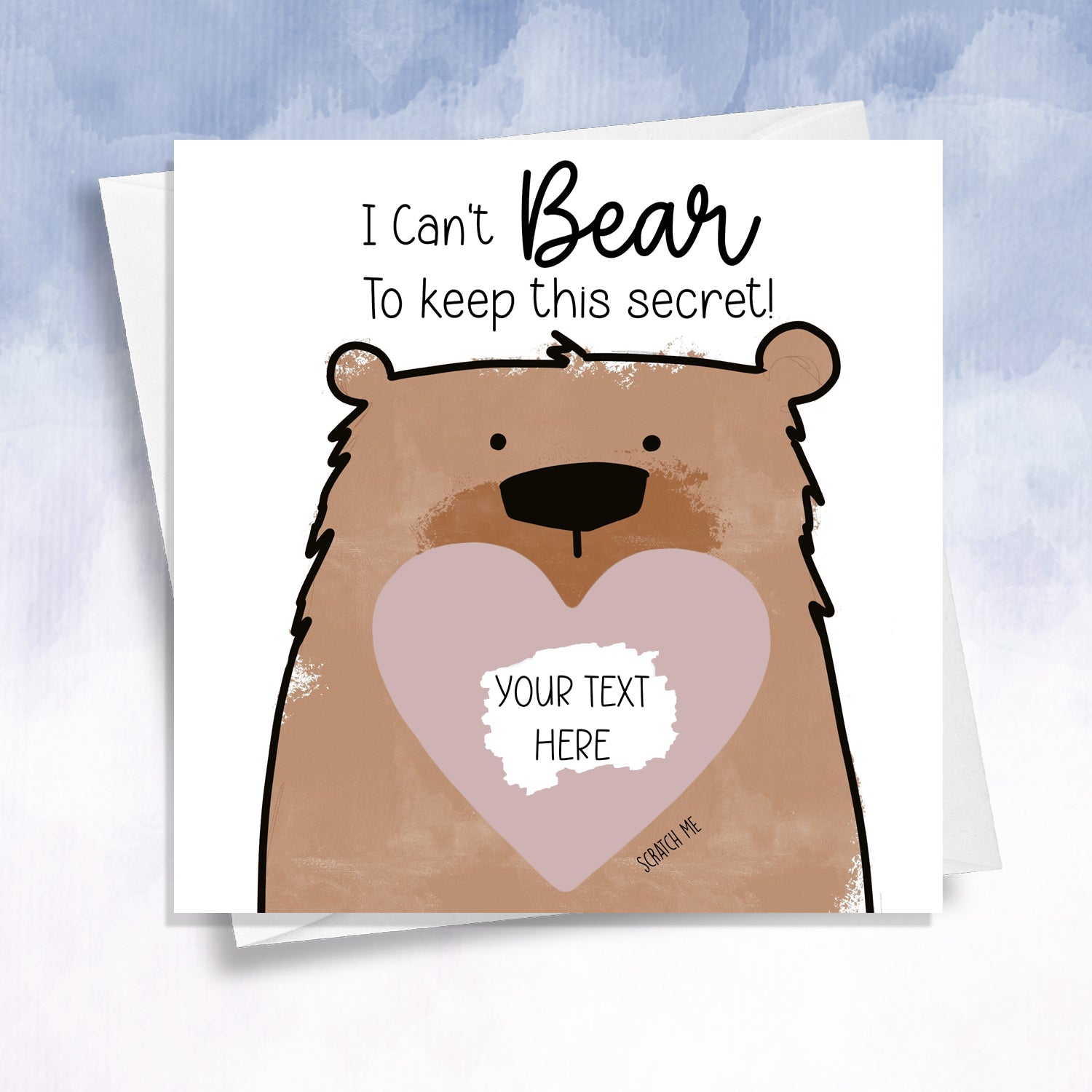 Are you bursting at the seams with an exciting secret? The Personalised Can't Bear to Keep This Secret Scratch Card is the perfect way to share the news in a fun and memorable way. This versatile card is perfect for revealing that your little one is going to be a big brother or sister, or even that you're pregnant. Watch the recipient's surprise and delight as they uncover your secret. This unique and creative card is sure to make the big reveal a moment to remember. So why wait? Order your personalised scratch card today and get ready to share the news in a truly special way.