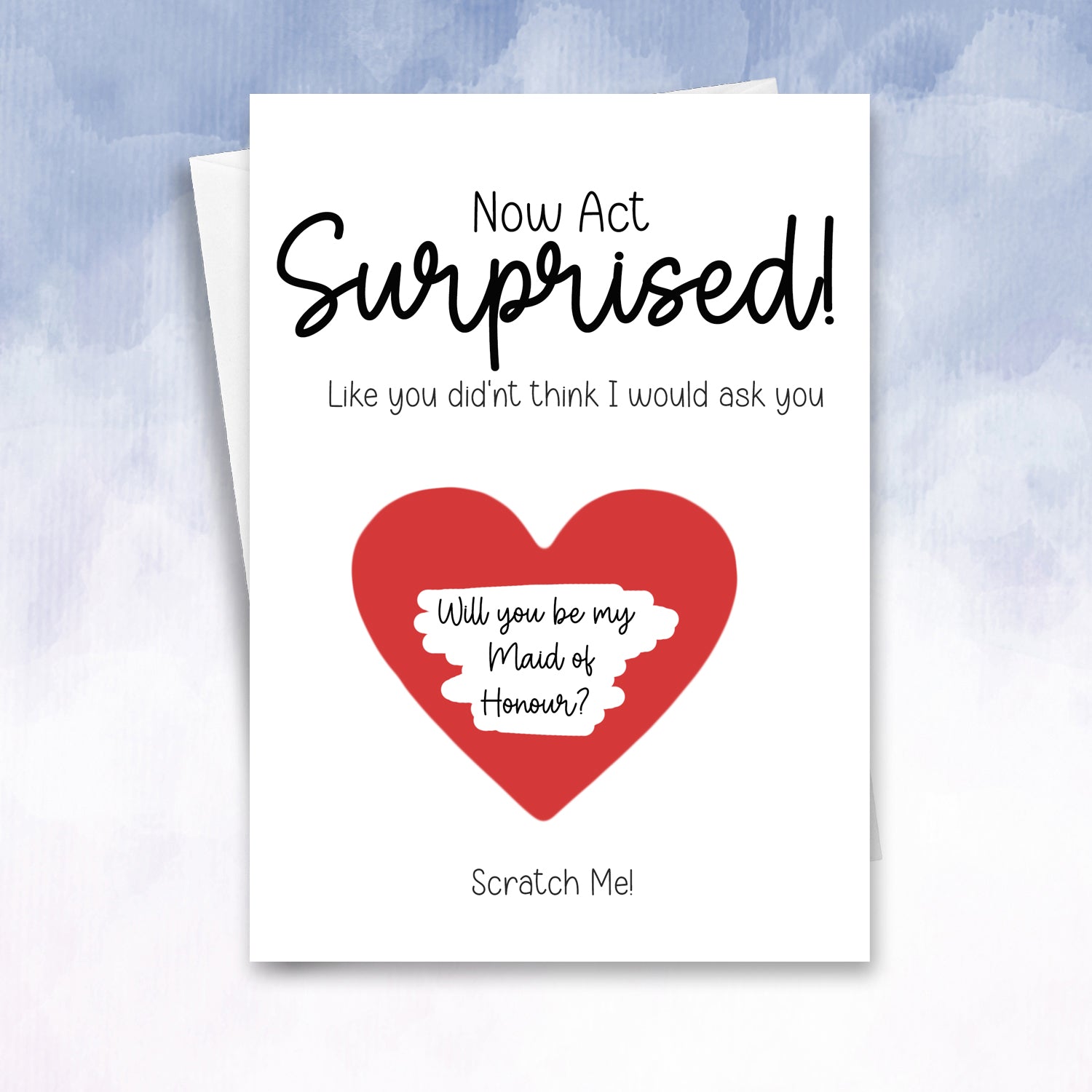 Now Act Surprised Scratch Off be my maid of honour or Bridesmaid Card
