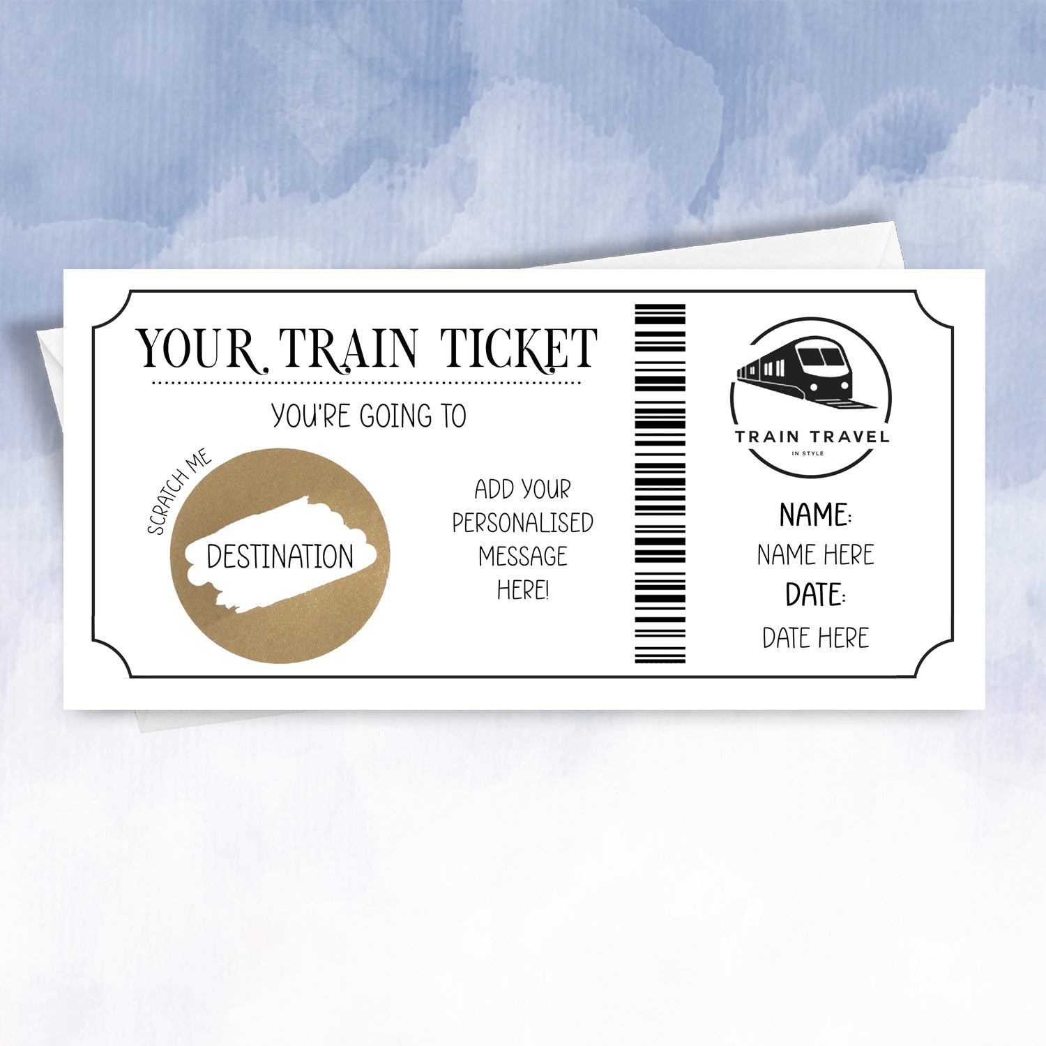 🚂 Personalised Train Ticket Travel Reveal Scratch Card – Surprise Trip Gift